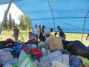 19.05.2018 молодые парни и девушки из школы православных добровольцев «Дельфин» города Новошахтинска, под руководством протоиерея Романа Амплеева, благочинного приходов Новошахтинского округа, руководителя Отдела по взаимоотношениям Церкви с обществом Шахтинский епархии, руководитель сектора по взаимодействию с МЧС России и департаментом по предупреждению и ликвидации чрезвычайных ситуаций Ростовской области в Шахтинской епархии, совместно с МЧС России и департаментом по предупреждению и ликвидации чрезвычайных ситуаций Ростовской области, и Благотворительным фондом «Солидарность. Добро. Милосердие» при содействии администрации Новошатинского транспортного техникума имени Героя Советского Союза Вернигоренко И.Г , провели трудовую акцию «Помощь Донбассу»