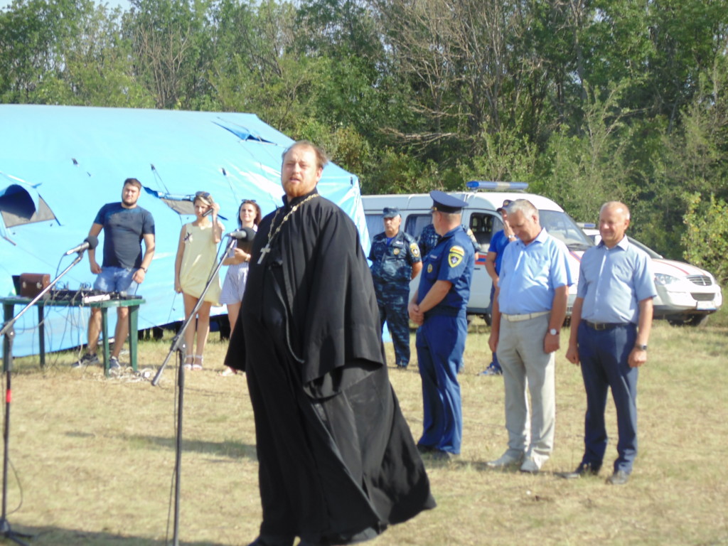 Перед собравшимися выступил, благочинный приходов Новошахтинского округа протоиерей Роман Амплеев, руководитель сектора по взаимодействию с МЧС России и департаментом по предупреждению и ликвидации чрезвычайных ситуаций Ростовской области в Шахтинской епархии. Который сам, являясь квалифицированным спасателем, в своем слове подчеркнул, нужность и важность благородного дела, которому служат собравшиеся, значимость тех совместных дел милосердия, которые регулярно проводятся Шахтинской епархией, приходом храма в честь Донской иконы Божией Матери и Ростовской областной поисково-спасательной службой, и поблагодарил спасателей за отзывчивость, соработничество и взаимопомощь.