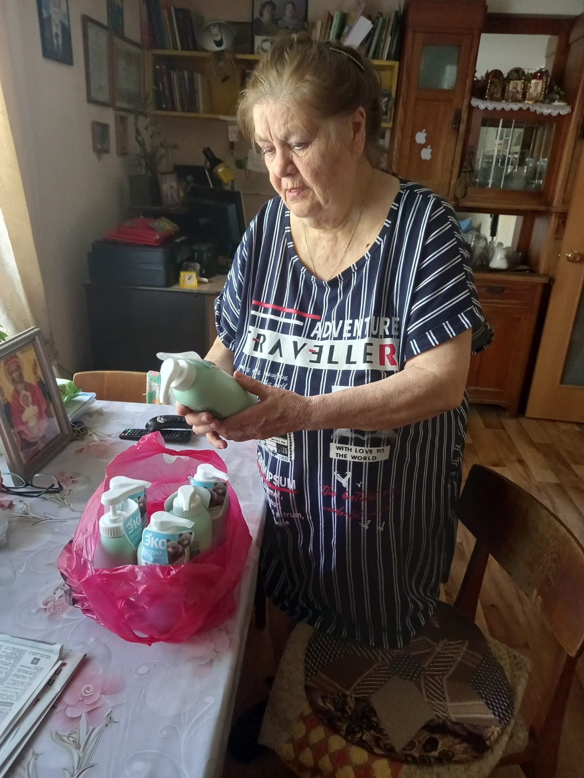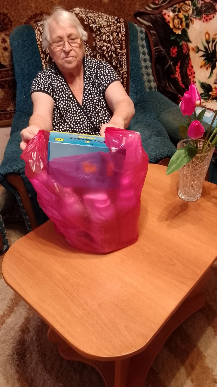 Добровольцы гуманитарного центра «От сердца к сердцу», по благословению протоиерея Романа Амплеева, благочинного приходов Новошахтинского округа, руководителя отдела по взаимоотношению Церкви с обществом Шахтинской епархии, доставляют продуктовые и гигиенические наборы, сезонные вещи в семьи, где есть инвалиды, мамочки с маленькими детьми и пожилые люди. Акция проводилась в рамках проекта «ЭКОКЛУБ МИРОНОСИЦЫ», поддержанного АРГИ РО, который предусматривает такой вид помощи для семей, обратившихся в наш центр.