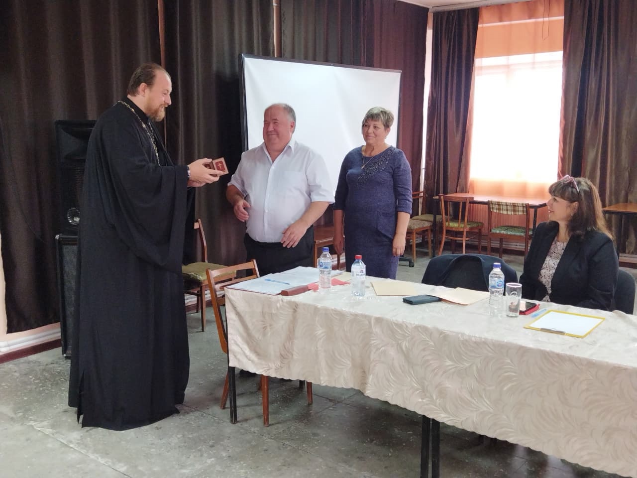 Юбилейной медалью в честь 100-летия Всероссийского Общества Слепых был награжден протоиерей Роман Амплеев, благочинный приходов Новошахтинского округа, руководитель Отдела Шахтинской епархии по взаимоотношению Церкви с обществом. Его помощнику Саханиной И. В. вручено Благодарственное письмо.