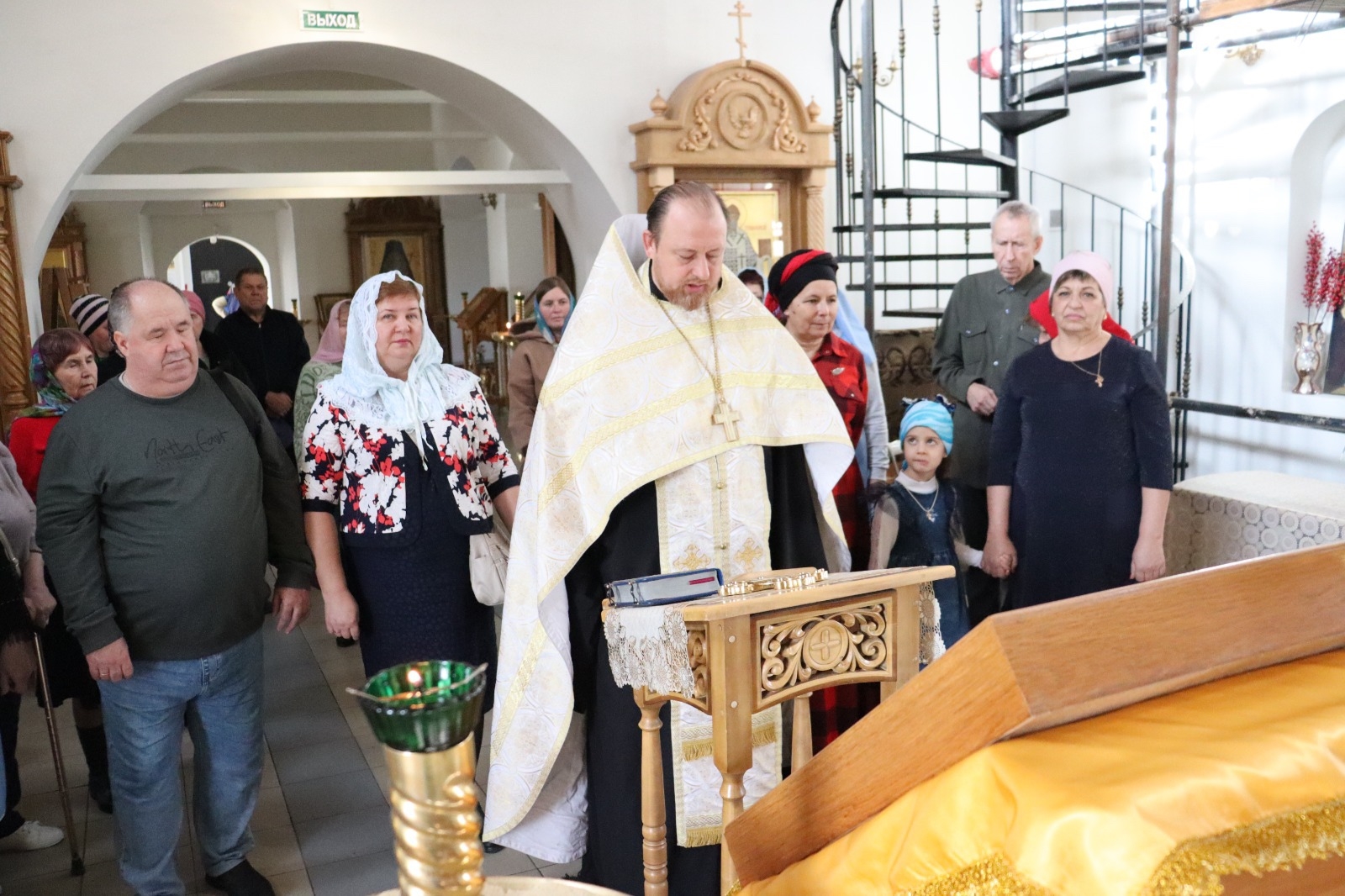 После молебна священник сказал краткую проповедь, посвящённую Святителю Тихону, которую закончил словами: «…Духовная красота нигде так успешно не развивается, как в этом дивном и божественном месте, где апостолы и пророки смывают, исправляют, стирают старость греха, наводят цвет юности, уничтожают всякое пятно, всякий порок, всякую скверну нашей души. Душевную красоту не может разрушить ни время, ни болезнь, ни старость, ни смерть и ничто подобное, но она постоянно остаётся цветущей» (свт. Иоанн Златоуст, 44, 614–615). Свою проповедь батюшка завершил словами: «Радуйся, святителю отче наш Тихон, Богом избранный Патриарше. Святителю отче Тихон, моли Бога о нас. Святии отцы наши, молите Бога о нас». В конце встречи председатель Новошахтинского отделения УПП ВОС Игорь Николаевич Седов выразил благодарность за помощь, сотрудничество и поддержку.