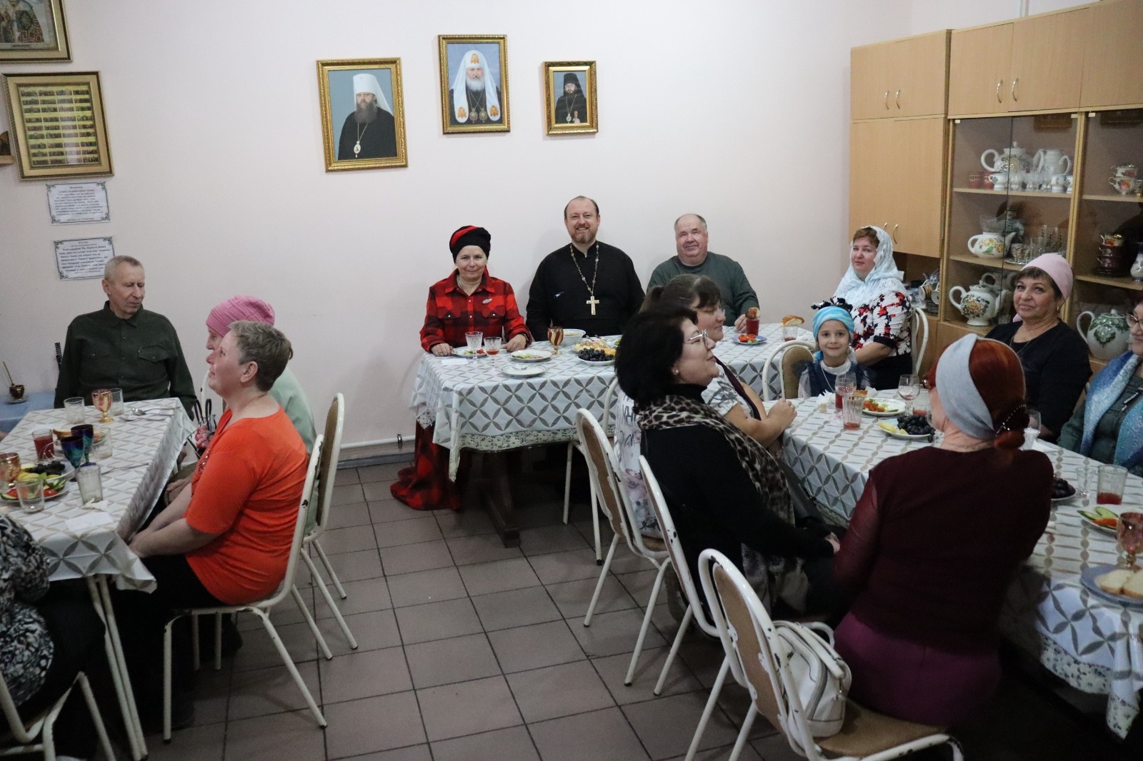 После совместной молитвы в трапезной храма для членов общества УПП ВОС был накрыт праздничный обед. Было сказано много теплых слов. Встреча прошла в дружеской и радостной обстановке.